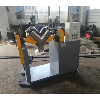 V型混合機系列產品為高效不對稱混合機,它適用于化工、食品、醫藥、飼料、陶瓷、冶金等行業的粉料或顆料狀物料的混合。該機結構合理、簡單、操作密閉,進出料方便,(人工或真空加料)筒體采用不銹鋼材料制作,便于清洗,是企業的基礎設備之一。本機一端裝有電機與減速機,電機功率通過皮帶傳給減速機,減速機再通過聯軸器傳給V型桶。使V型桶連續運轉,帶動桶內物料在桶內上、下、左、右進行混合